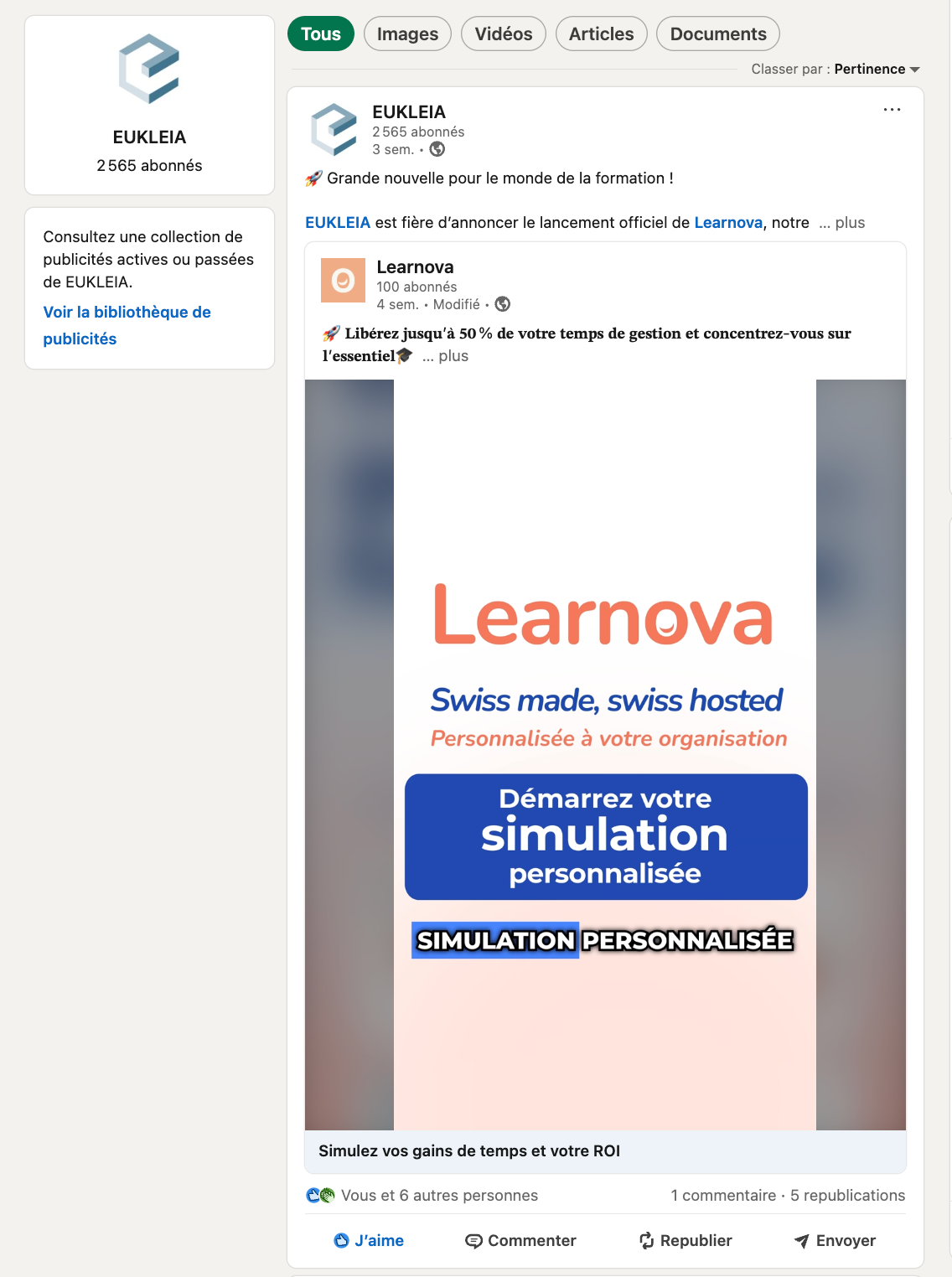 Le projet Learnova répond aux besoins du marché en simplifiant la gestion des établissements et formations internes. La stratégie de design mise en place favorise une compréhension immédiate des fonctionnalités clés et maximise l’adoption ainsi que l’impact sur le marché.
