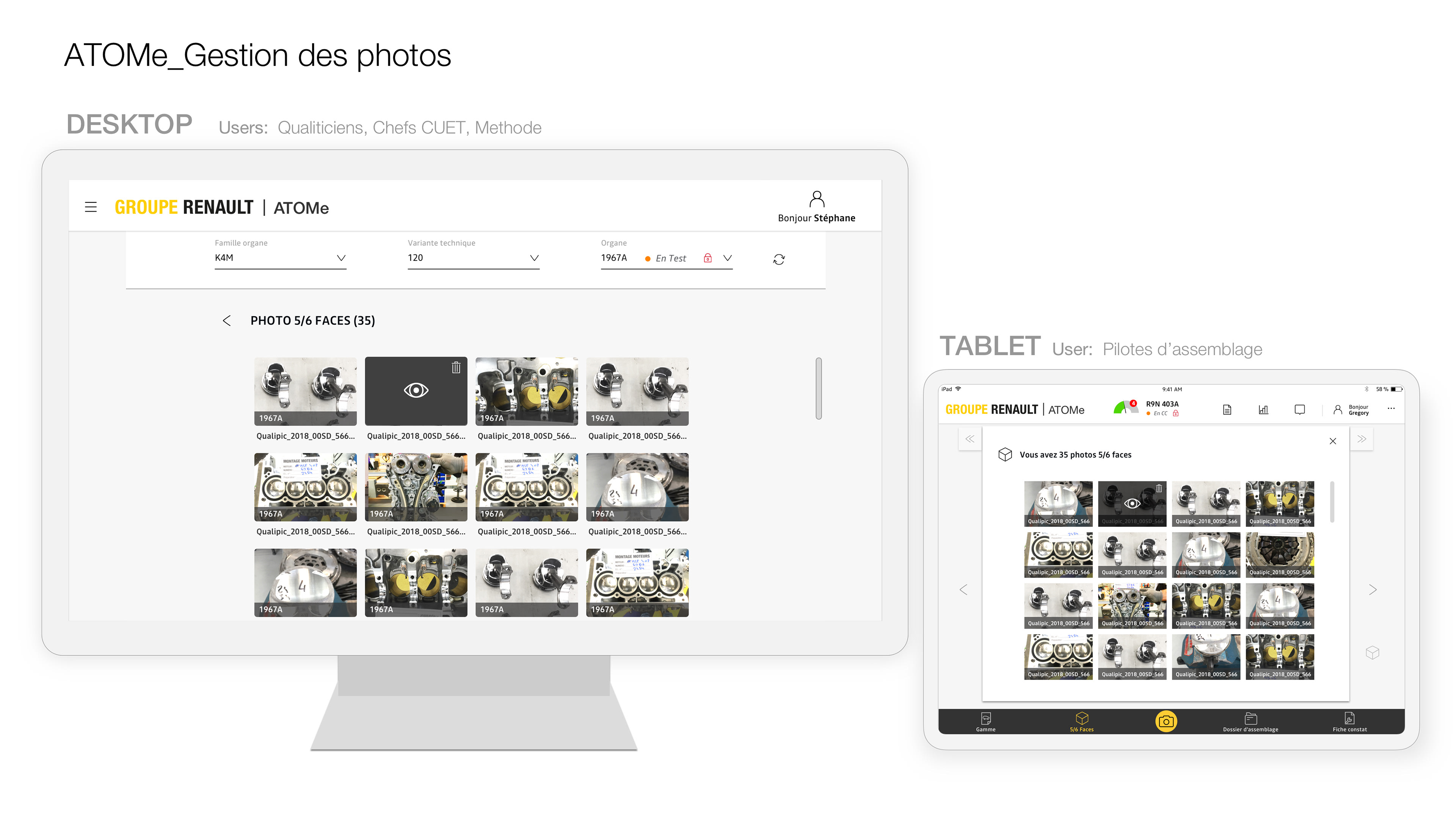 Renault introduced the "Atome" project, a digital solution aimed at streamlining the engine assembly process. The primary goal was to enhance productivity and minimize efficiency loss during work hours. "Atome" enables collaborative real-time work progress sharing among team members, resulting in expedited work process validation with a remarkable 65% efficiency boost. The project, initiated in R1, spanned a duration of 7 months.